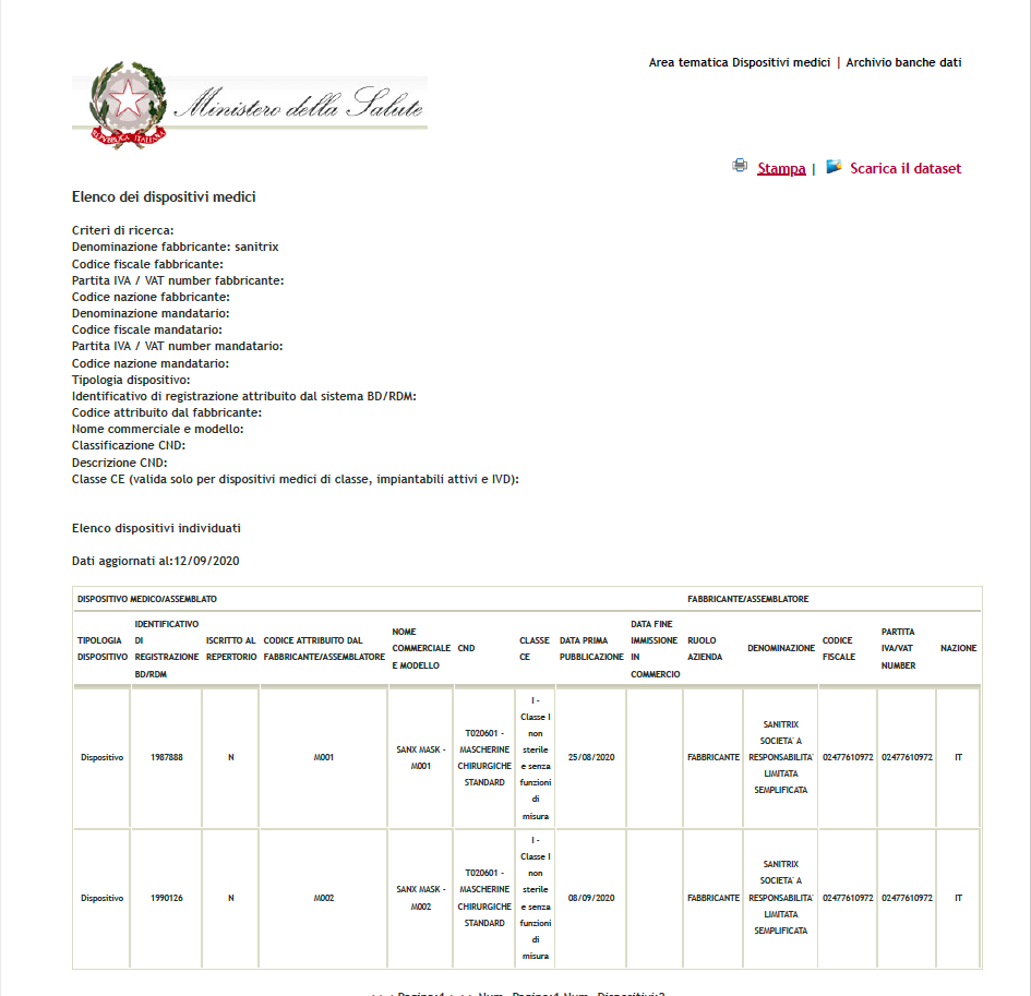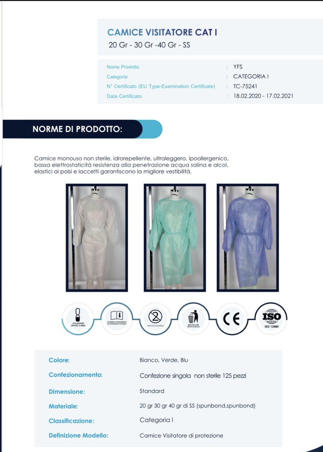 - Dispositivo Medico di Classe I marchiato CE direttiva 93/42/CEE, Classe I
